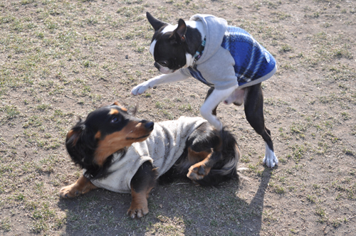 このあたりの小型犬とはなかなか上手く遊べません。