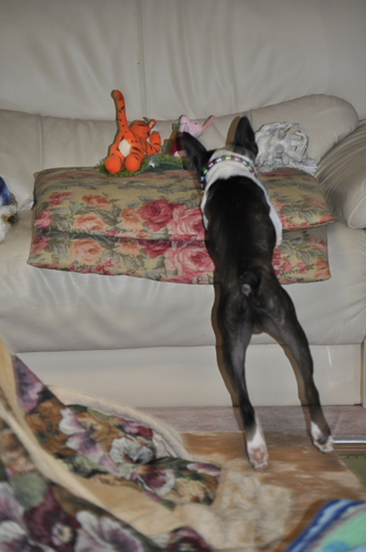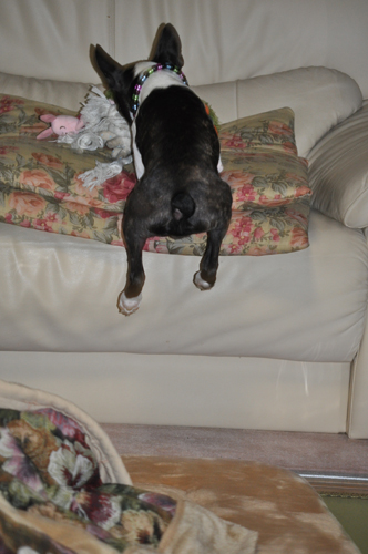 ソファの上に登らせるかどうしようか、と思ってましたけど、