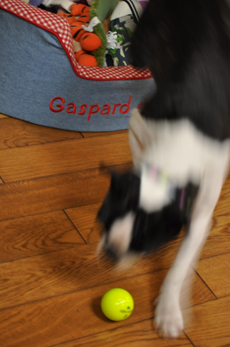ボールの遊び方は、噛むだけじゃないと学習したのかしら。