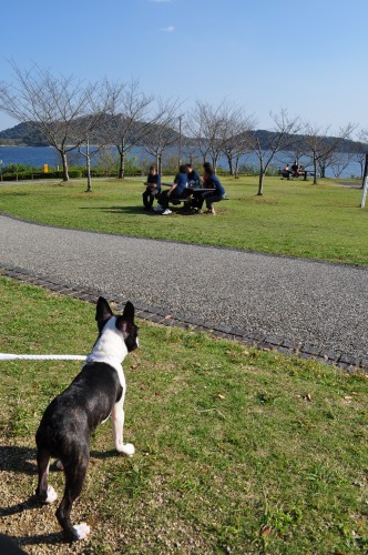 早速、合宿の成果が出て、芝生のあるパーキングエリアで