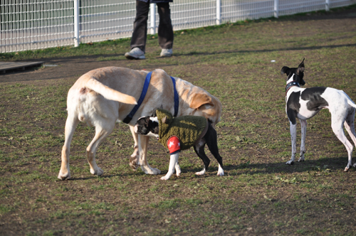 先にいた、イタグレのレオンくんに、早速ご挨拶。