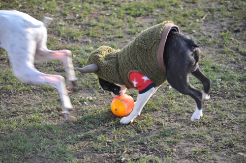 クーくんのボールを真っ先に拾いに行く、梵。