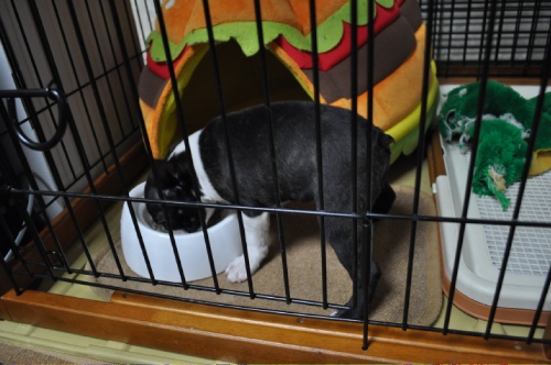 梵ちゃんの背中に 多頭飼いリード サークルの中に