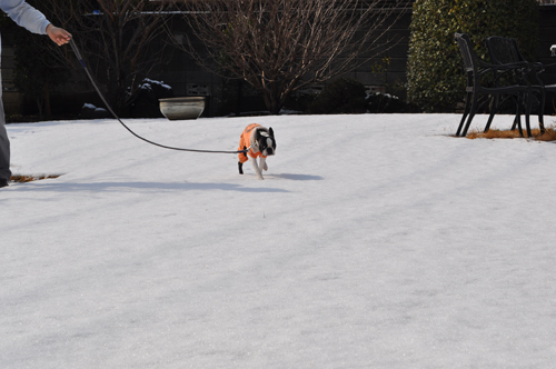 雪の中、実家の庭を嬉しそうに走り回って