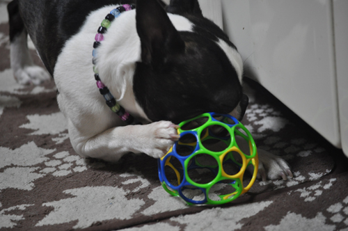 新しく買って来たビレッジヴァンガードのボールを与えると