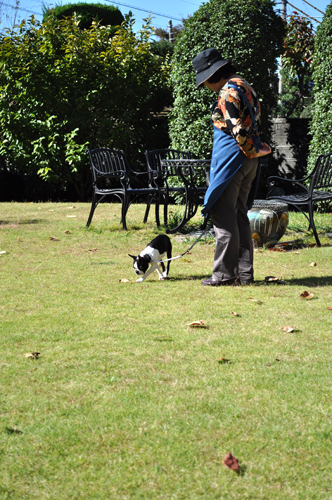 外の散歩より、庭の散歩の方が好きっぽい。