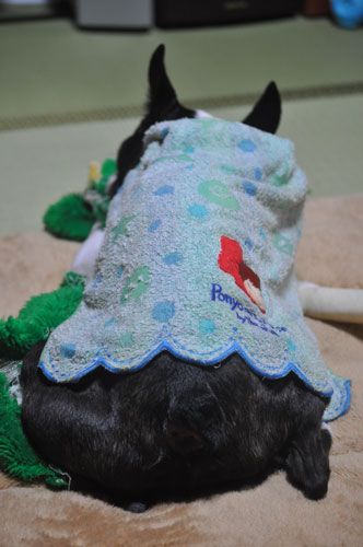 ぞうさんだったもの(3代目)を手繰り寄せて眠ります。