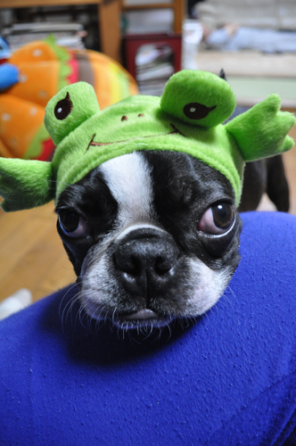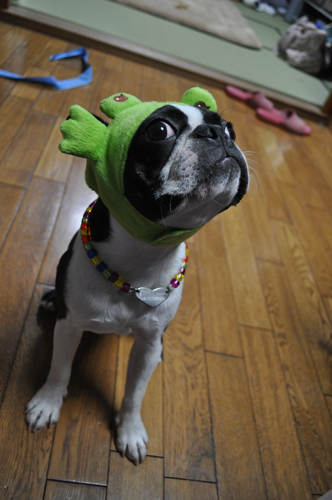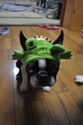 取ろうともせずにかえるを被っていました。