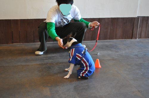 コーンのところでオスワリするボスくんです!