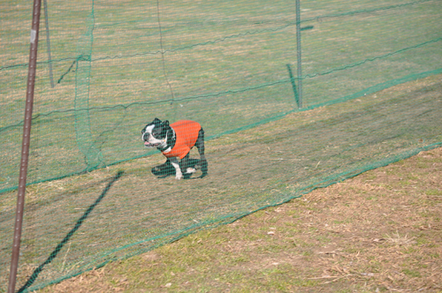 お外で、見学中のボスくん。