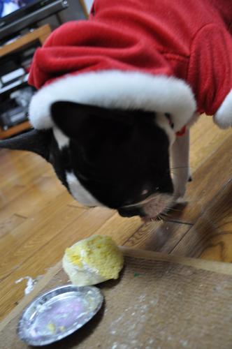 梵、そんなんじゃ、立派なサンタ犬になれないぞ、
