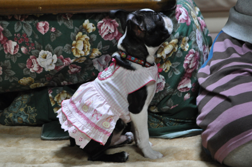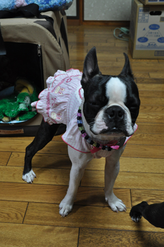 フリフリは筋肉質のボストンとはミスマッチですね(笑)