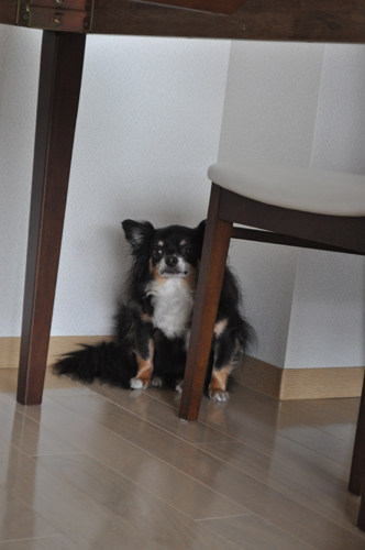 激しいボステリ達の遊びに、隅っこ避難中のケンシロウ君。