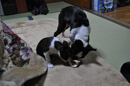 梵ちゃん、那由ちゃんがはみはみしてる骨