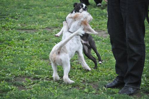 攻撃性のない、要求吠えをするので、相手の子が困ってるととめます^^;