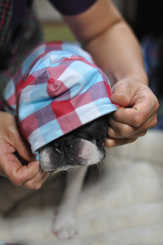 寒かったので、お洋服着用。