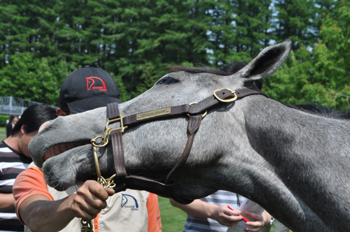 でも、競走馬用の調教をしてしまうと、気が荒くなってあまり気楽に触れなくなっちゃうので今のうちにいっぱい触っておきました^^