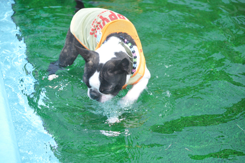 とにかく怖いもの知らずの那由が、プールに前足つっこんで、