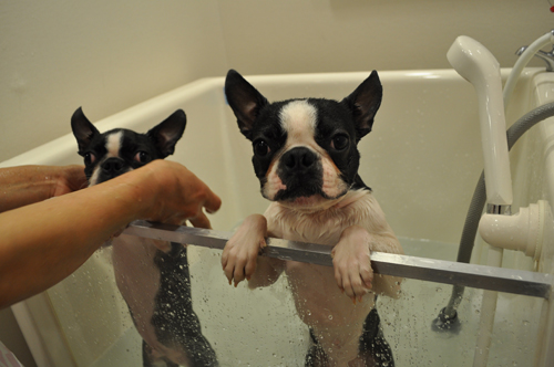 マイクロバブルシャワーで、じっくり10分、体に掛けてあげます。