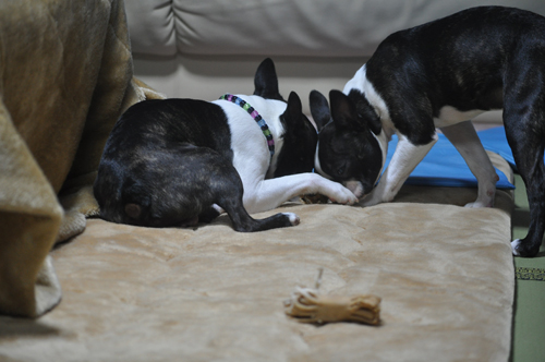 初めは、二人に一個づつ、カミカミホネをあげました。