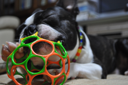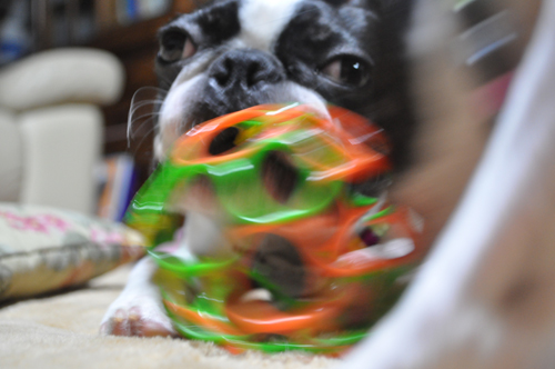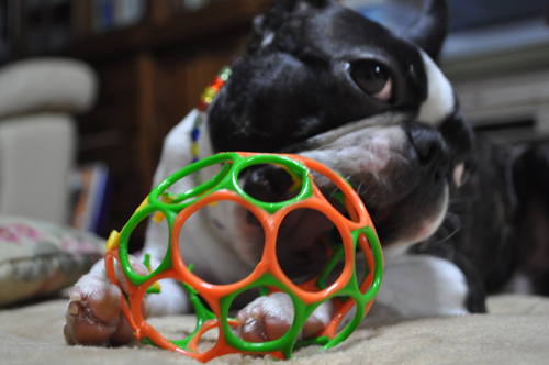 この日も、梵が壊したボールのはじっこをくちゃクチャかんでいます。